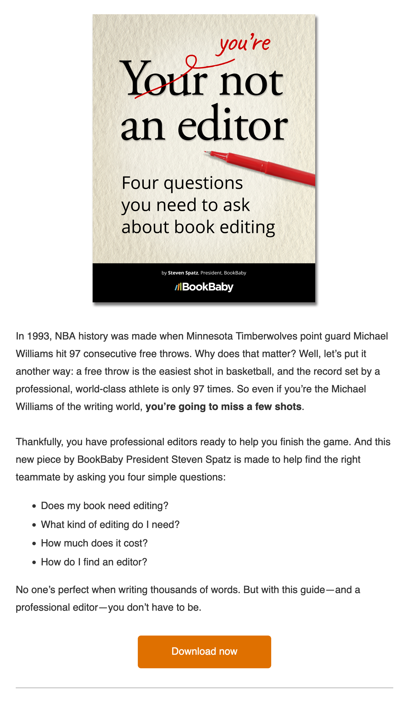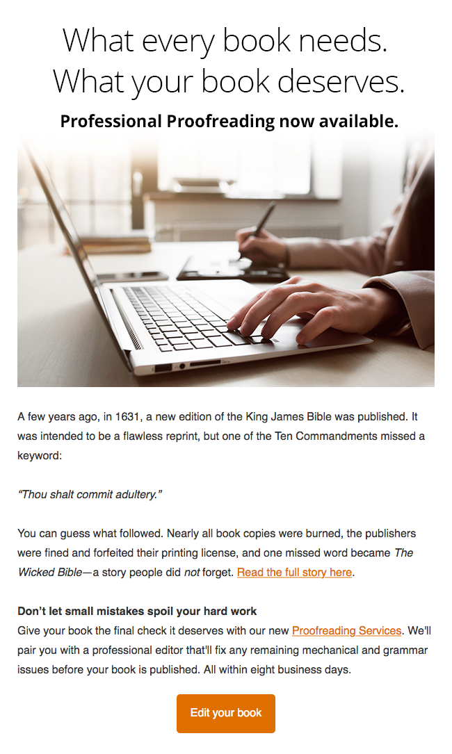 Online book editing is a market saturated with competition. BookBaby wasn't getting the traction it wanted from its landing pages, so to create distinction, we built a concept around true cautionary tales showing authors what happens when they don't edit their books.